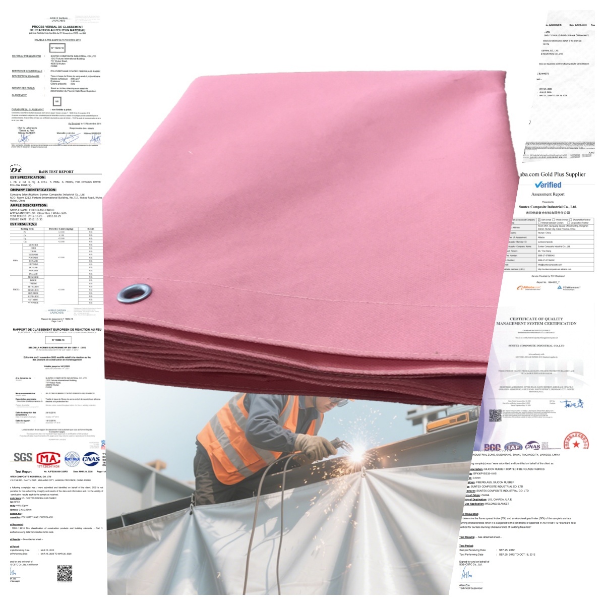 100% फाइबरग्लास वेल्डिंग कंबल फायर कंबल 550°C गर्मी प्रतिरोधी एक्रिलिक कोटिंग के साथ
